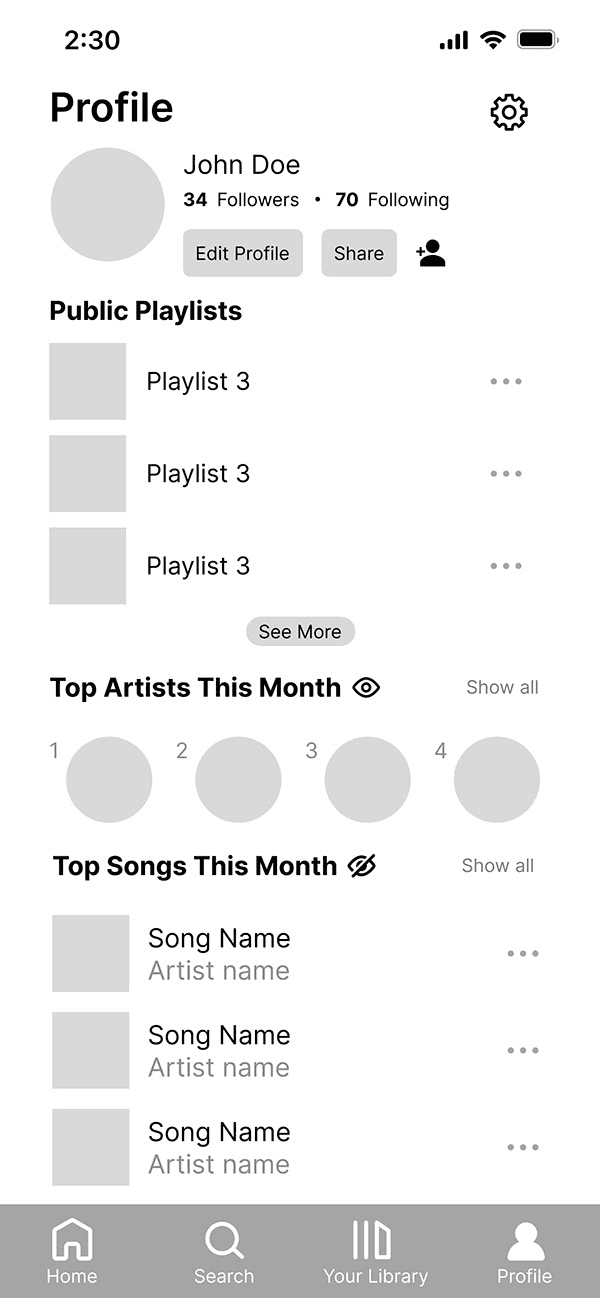 Similar to the desktop version, users can display top songs and artists on their profiles. This gives users easy access to their current favorites.