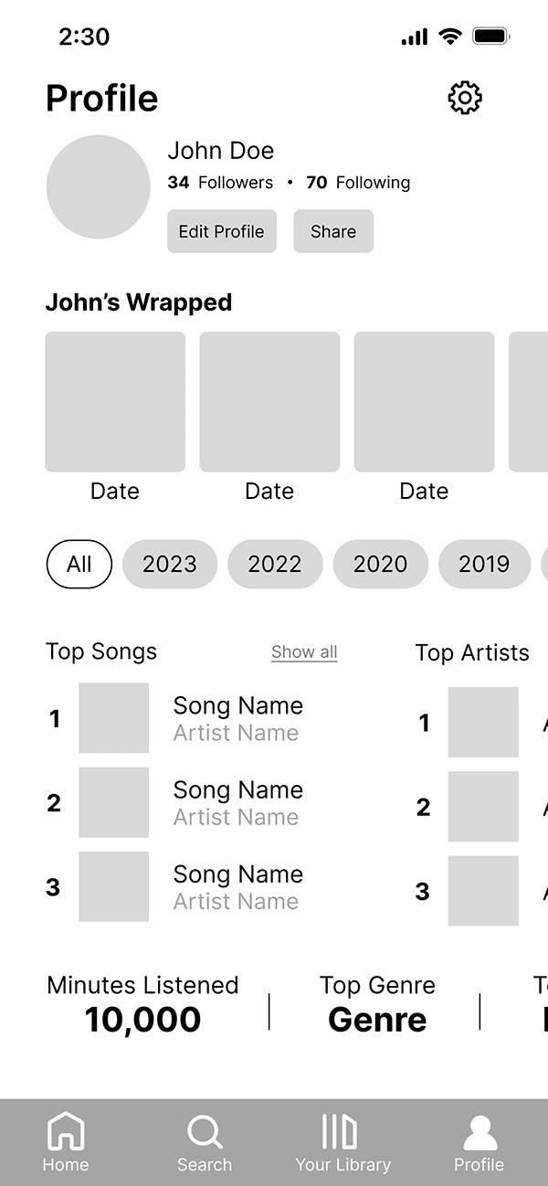 Since Spotify Wrapped is a widely appreciated feature, users can display Wrapped playlists from previous years on their profiles. However, other statistics aren't shown to maintain novelty and excitement.